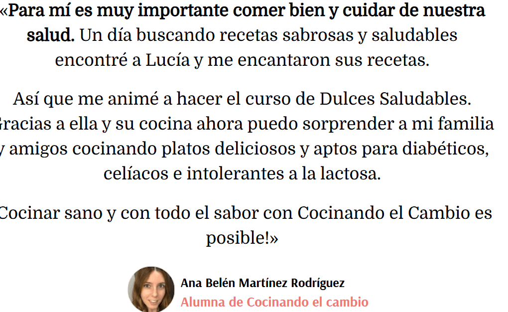 ver una opinión real de Dulces Saludables de Cocinando el Cambio.